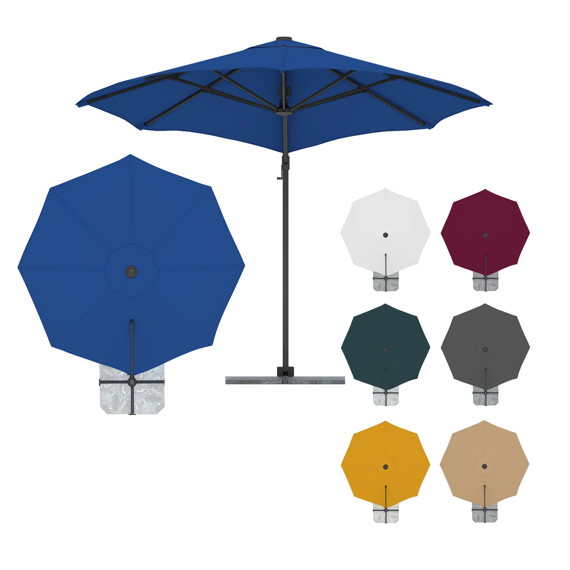 Ampelschirm blau 3,5m mit anthrazitfarbenem Gestell – paramondo parapenda