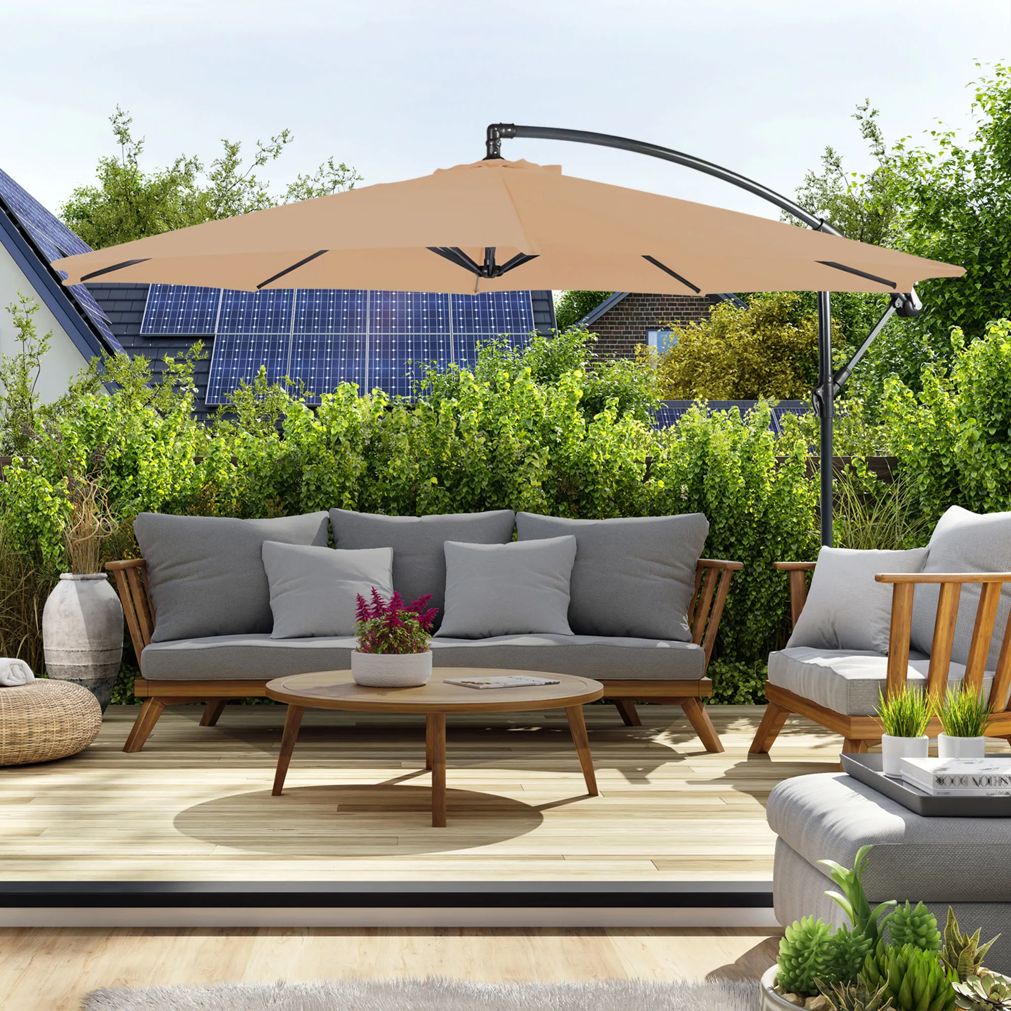 - Der Schirm hat einen Durchmesser von 3 Metern, was ihn ideal für kleine bis mittelgroße Terrassen und Balkone macht.