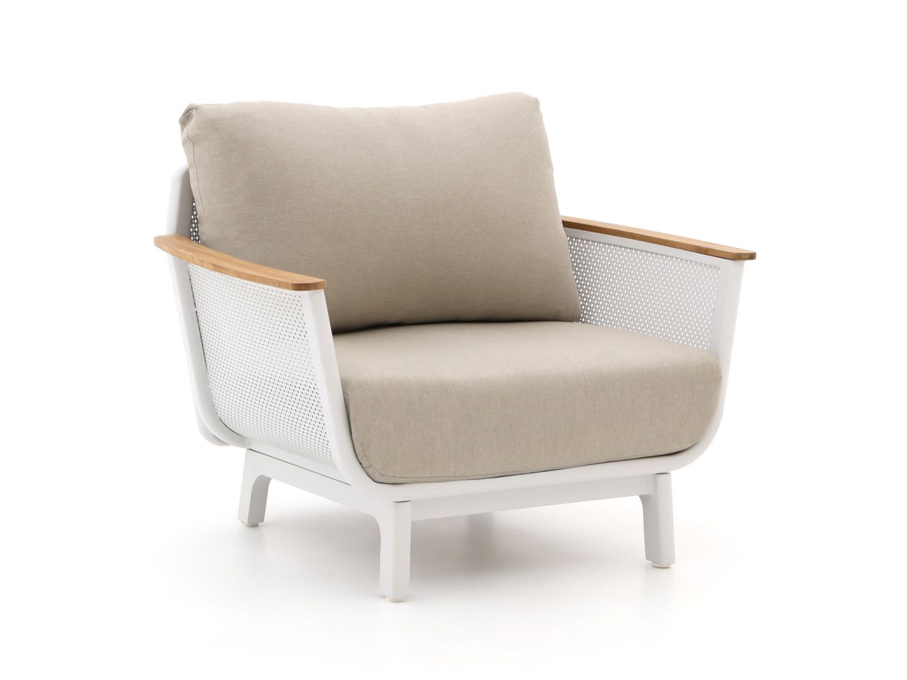Der Bellagio Sorico Gartensessel in Weiß ist die perfekte Wahl für Ihren Außenbereich. Sein stabiler Aluminiumrahmen gewährleistet eine hervorragende Langlebigkeit und macht ihn zudem rostfrei. Mit den bequemen Kissen in einem natürlichen Braunton lädt dieser Sessel dazu ein, sich nach einem langen Tag zurückzulehnen und die frische Luft zu genießen. Ideal für entspannte Stunden im Garten oder auf der Terrasse, sorgt der Bellagio Sorico Gartensessel dafür, dass Sie sich rundum wohlfühlen und die Natur genießen können.