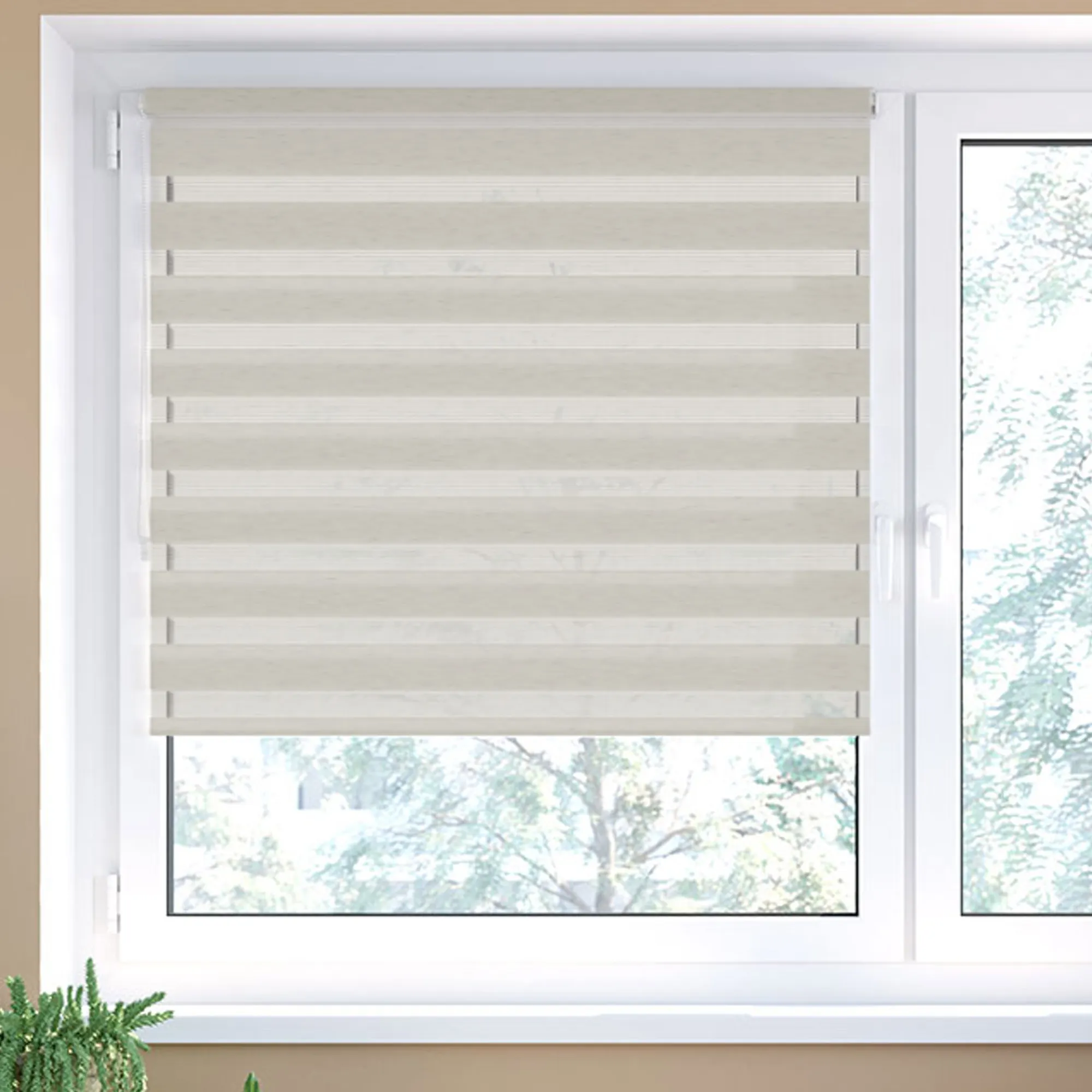 Das Elegance Doppelrollo ist in einer großen Farbpalette erhältlich, von dezenten Naturtönen bis zu kräftigeren Farben. So finden Sie garantiert eine Variante, die zu Ihrem Einrichtungsstil passt.