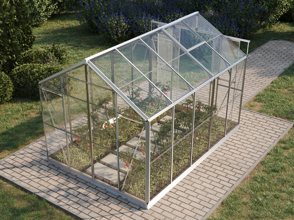 Zusätzlich zum Lüften über die Doppelschiebetür kann man mit Schattiernetzen, automatischen Fensteröffnern oder Ventilatoren arbeiten, um Temperatur und Luftfeuchtigkeit zu kontrollieren und somit ideale Wachstumsbedingungen zu schaffen.