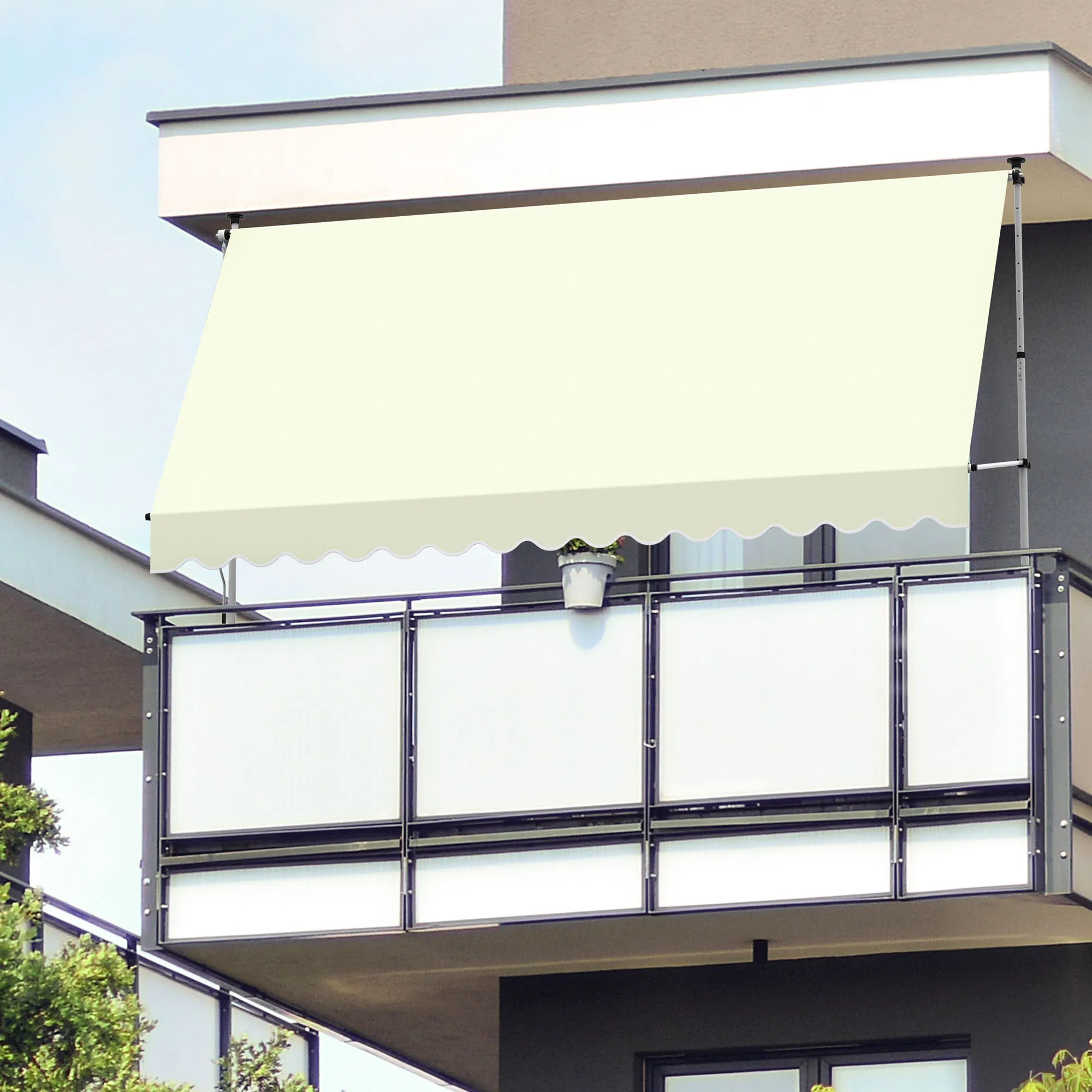 Klemmmarkise / Balkonmarkise JAM 2000 | 3,95×1,20 m | Stoff: Uni, creme-weiß | Gestell: weiß | paramondo Markise ohne Bohren für Balkon