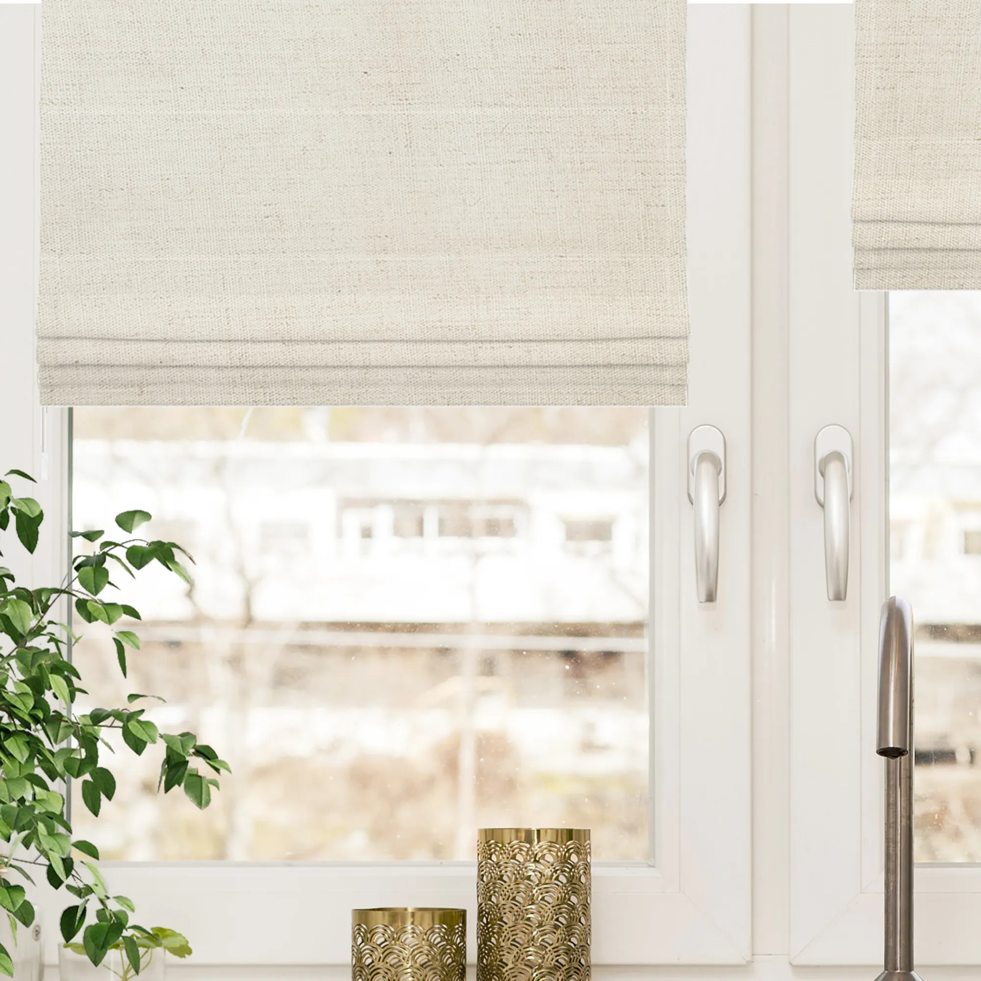 Das elfenbein-melierte Raffrollo bringt eine freundliche und zeitlose Note in verschiedene Räume Ihres Hauses: